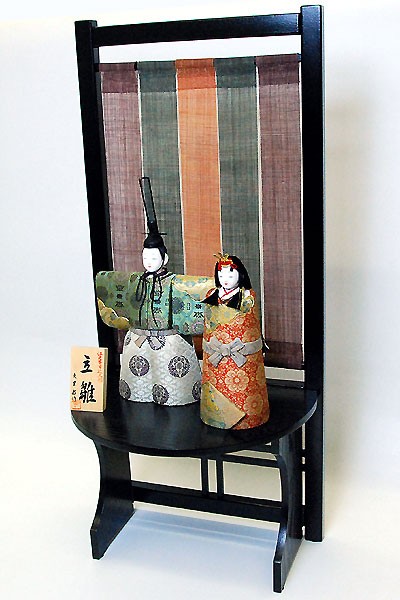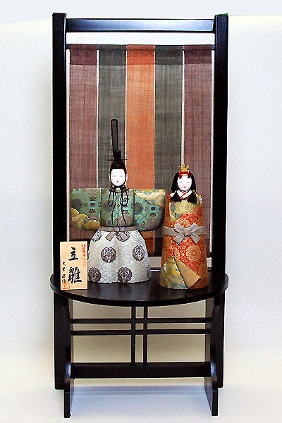 ・台座・屏風等には落ち着いた色目の雛人形セット。