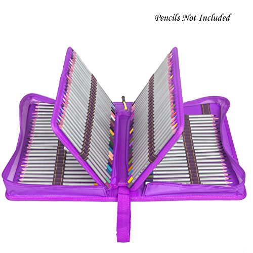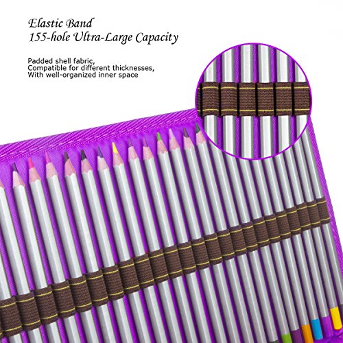150 Slots Pencil Case, STARVAST Pencil Bag Holder Large Capacity Canvas Smooth Zipper Storage Pouch for Prismacolor Colored Pencils, Crayola Colored Pencils, Marco Pens and Cosmetic Brush (Purple)