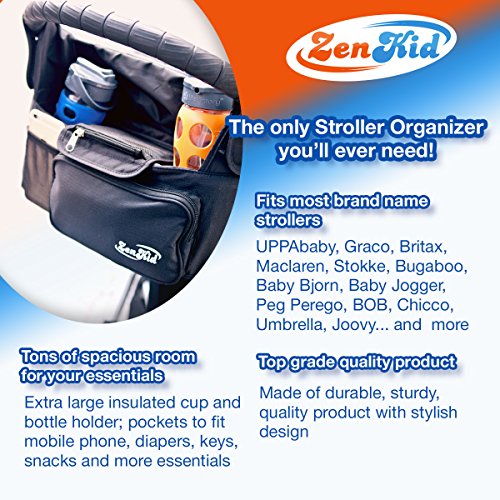 The ZenKid Stroller Organizer is a perfect PARENT & STROLLER ACCESSORY sized for your smartphone, keys, wipes, & diaper storage