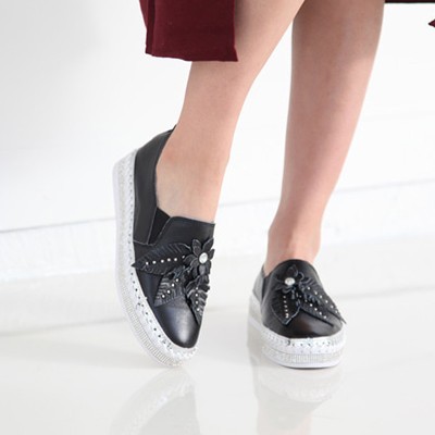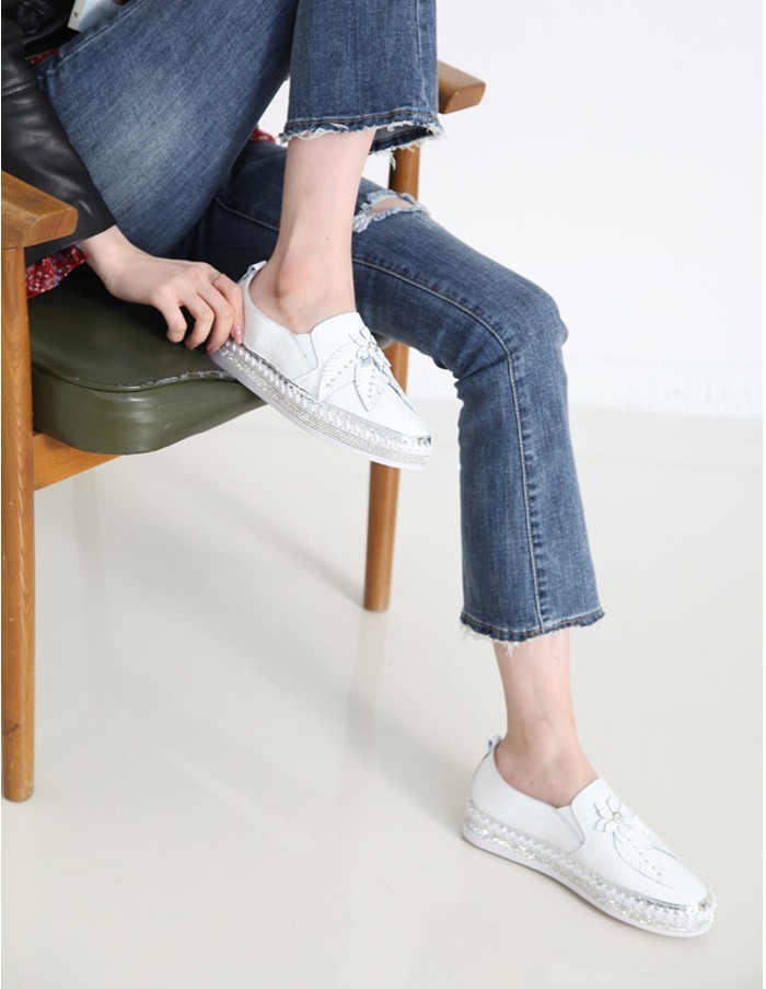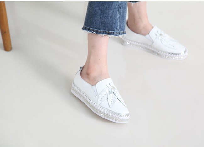 商品名:スリッポン レディース スニーカー 本革 レザー 2018 春 ファッション 靴 婦人靴
