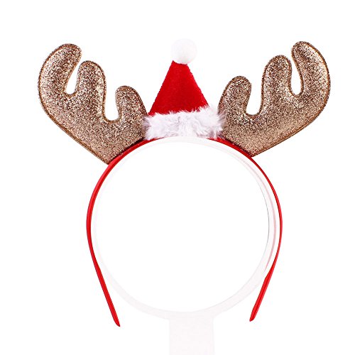 100% brand new and high quality Shining and glitter reindeer horn, with Santa Claus Caps, the headband is a fashion combination Cute and lightweight, Anlters Headband for festive occasions, adding strong atmosphere to Festivals,Halloween and Christmas Package Included: