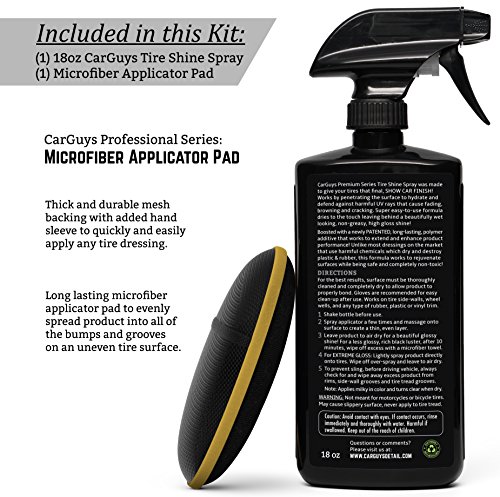 ✔BECAUSE YOUR CAR DESERVES THE BEST TIRE SHINE ON THE MARKET! CONTAINS NEWLY PATENTED POLYMER ADDITIVES THAT BOOSTS PRODUCT PERFORMANCE AND LONGEVITY : Car Guys Tire Shine Spray is one of the most advanced car detailing products for that deep wet tire black shine ! Provides a UV protectant shield while also giving your tires and trim that final, SHOW CAR FINISH! This car spray is boosted with a newly PATENTED nano polymer additive that works to extend longevity and enhance product performance!