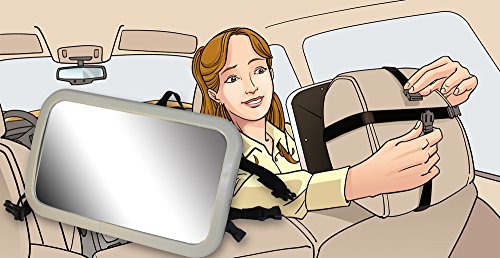 The unique Pivot-Ball Adjustment on the mirror allows for swiveling of the mirror to adjust for most vehicles shapes and sizes so that no matter what configuration of your vehicle and car seat you can adjust to see a full view of the baby. The Pivot-Ball Adjuster attaches with strong and secure straps that use a standard click-lock quick release attachment that securely tightens to your exact needs. Nothing will ever go flying about while driving, and it quickly can be moved between cars if needed. You likely will want one for all your family and grandparents vehicles.