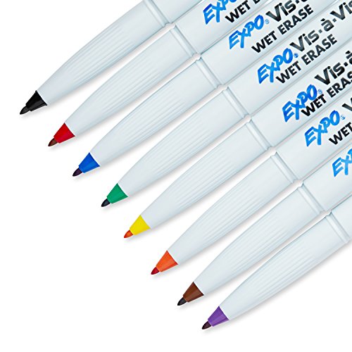 EXPO Vis-A-Vis Wet-Erase Overhead Transparency Markers, Fine Point, Assorted Colors, 8-Count