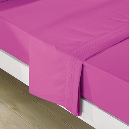 Embroidered Bed Sheets Set – 2800 Supreme Collection – Triple Lines Embroidery 288F Double Brushed Microfiber - Wrinkle Free, Fade Resistant, Ultra Soft -4pieces Bedding Set (Queen, Hot Pink)