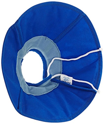 Soft flexible E collar made of nonwoven water resistant material. Lightly padded for comfort and better protection. Shoelace drawstring works especially well on cats. Priced considerably less than similar E collars. Two-tone blue color. Packaged in 5-packs except for sets. 5 1/2" small dog.Feature