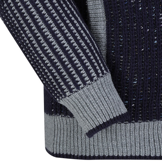 - 카라,소매단,밑단 립조직으로 실루엣을 잡아줌.