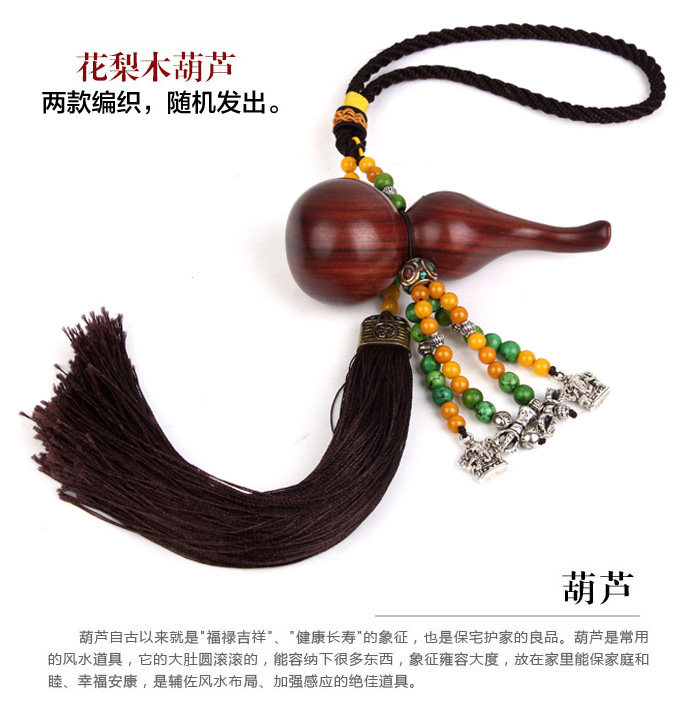 Gourd since ancient times , " Fluke auspicious ", " health and longevity " symbol , but also protect the yield residential care home . Gourd is commonly used feng shui props, because it Tripe big mouth shape, can be a good aura admission for himself, but also bad gas field can be absorbed and exhausted , and will not cause harm , is his assistant Feng Shui to enhance the induction of great props.