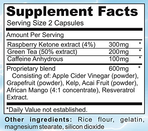 Professionally formulated with: Raspberry Ketone Extract, Green Tea Extract, Apple Cider Vinegar, Grapefruit, Kelp, Acai Fruit, African Mango + More