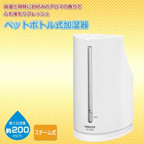 本体サイズ:幅11.5×奥行17×高さ20cm 消費電力:150W 最大加湿量:200ml/h 水タンク容量:市販のペットボトル500mlまで、連続使用時間:強運転時=約2.5時間※室温・湿度により連続加湿時間は変わる 適用床面積目安:木造和室=約3畳まで、プレハブ洋室=約6畳まで 電源コード長さ:約1.8m 本体重量(kg):0.7