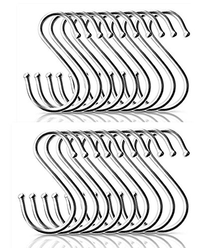QTMY Pack of 20 Stainless Steel Heavy Duty S-shaped Utility Hooks for Hanging Coat Clothes