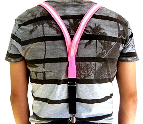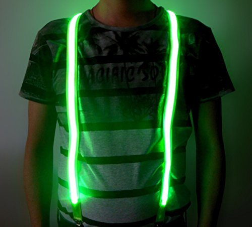 What's Included -One set of light up LED suspenders(Dimensions - Width: 1 Inch x Full Length 41 Inch(2.5*105cm). -Integrated battery pack. -One set of batteries included(2 replaceable CR2032 button cell batteries). -Package: 1x Clip-On Suspenders.