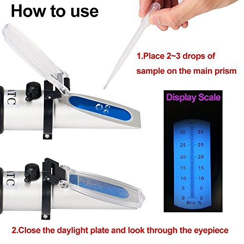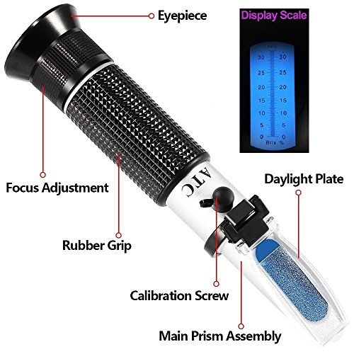 - ★ Utilities: Designed for testing the amount of sugars in fruits, vegetables and grasses and quality control in production, very helpful in agriculture, food manufacturing and field operation. For measuring brix, a refractometer is easier and more accurate than a hydrometer