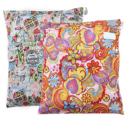 Yarra Modes 2 pcs Baby Wet and Dry Cloth Diaper Bags (Flower and Candy Ice Cream)