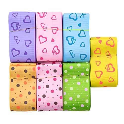 35 Yards (7x5yd) 1.5" Printing Heart Dot Grosgrain Ribbon