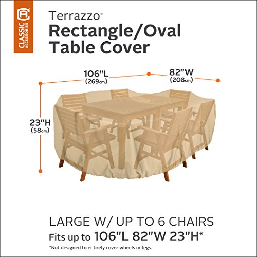 Classic Accessories Terrazzo Rectangular/Oval Patio Table & Chair Set Cover - All Weather Protection Outdoor Furniture Cover, Large (58262)