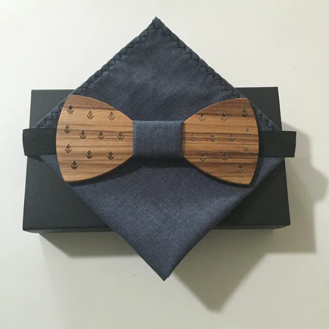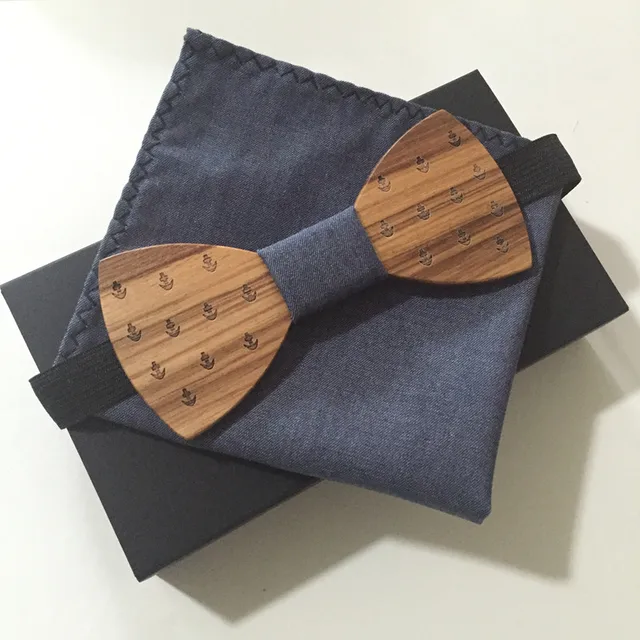 패션 오목 나무 나비 넥타이 남성 블랙 나비 넥타이 포켓 스퀘어 나무 나비 넥타이 1 개 무료 배송