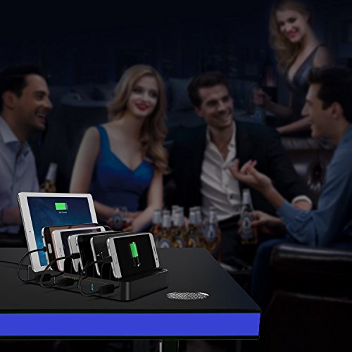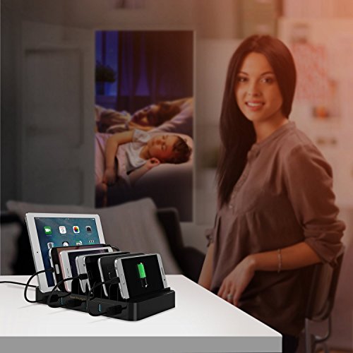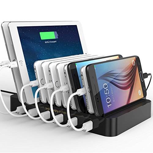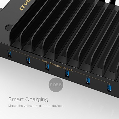 10-Port, 60W Powerful Station: 4 Charging ports(4x1A) with built-in retractable cables on Side A, 6 Smart USB charging ports(0~2.4A) on Side B. Allows you to charge up to 10 devices including smart phones and tablets simultaneously in a compact space.