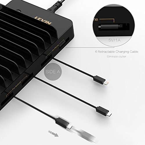Levin 10-Port USB Charging Station Dock with Built-in Charge Cables(Patented Retractable Design) Organizer for Smart Phones & Tablets, Black