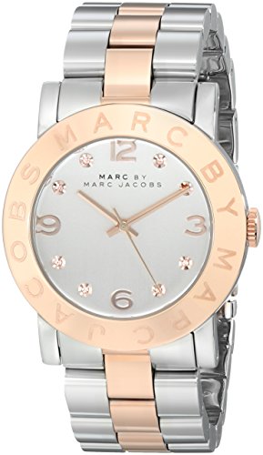 Two-tone watch featuring logo-engraved rose gold-tone bezel and silver-tone dial with Arabic numeral and crystal hour markers