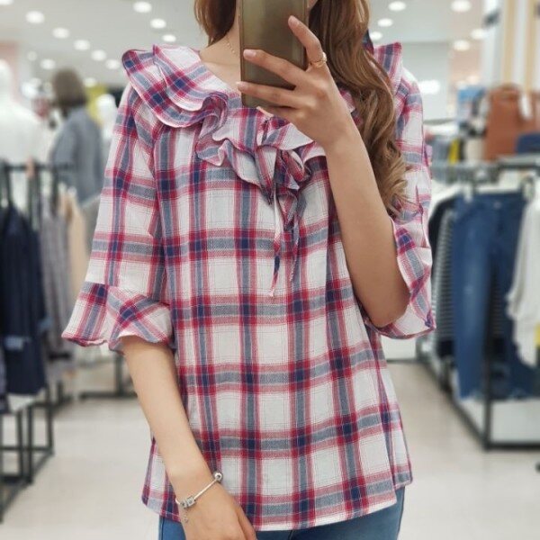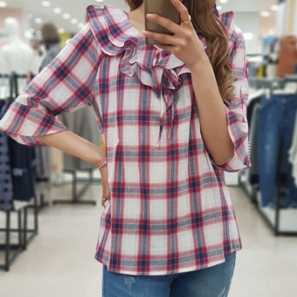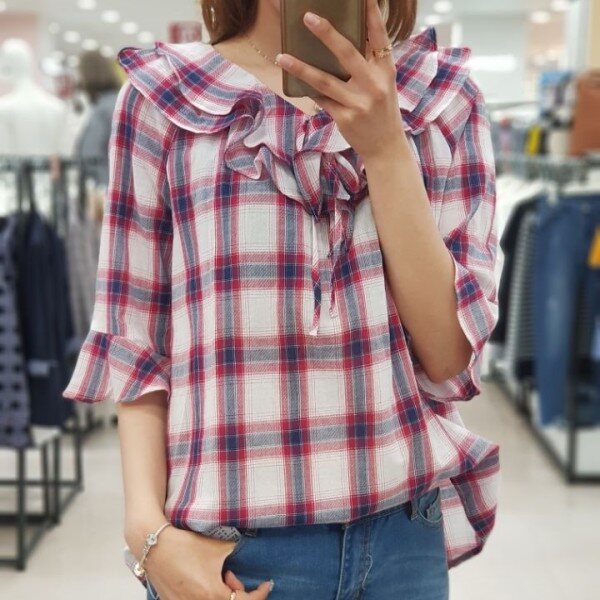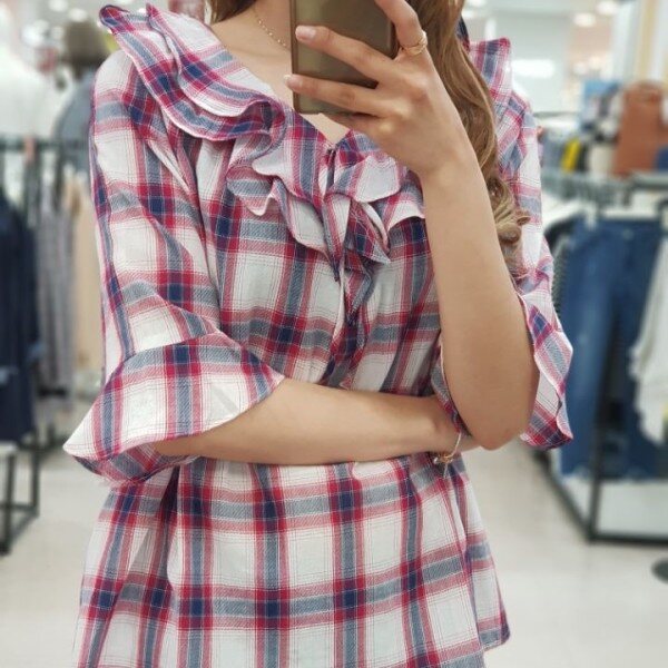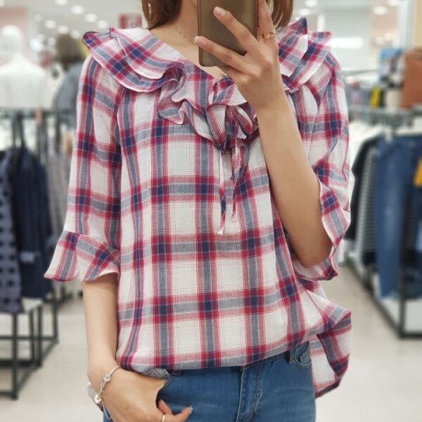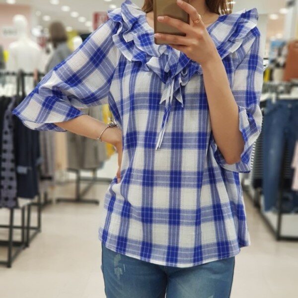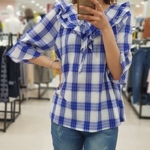 시원한 체크칼라와 여성스러운 케이프 라인으로 예쁘게 좋게 입기 좋은 블라우스 입니다.얇은 감으로 제작?니 통풍이 잘되어 한 여름에도 거리낌없이 선택하실 상품입니다.청바지, 스커트, 원피스 등 두루두루 데일리하게 입기 좋아요.