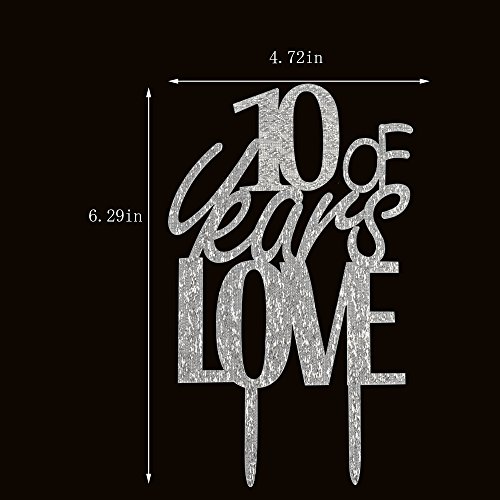 10 years of love cake topper for 10th anniversary ckae party decorations silver acrylic