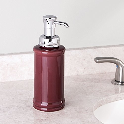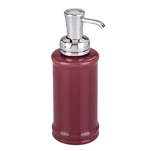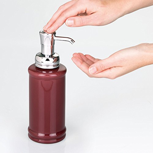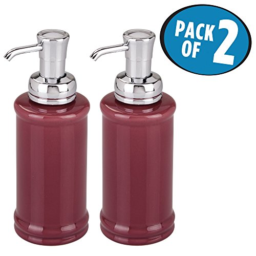 mDesign Liquid Hand Soap Ceramic Dispenser Pump Bottle for Kitchen, Bathroom | Also Can be Used for Hand Lotion & Essential Oils - Pack of 2, Cabernet/Chrome