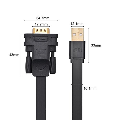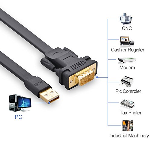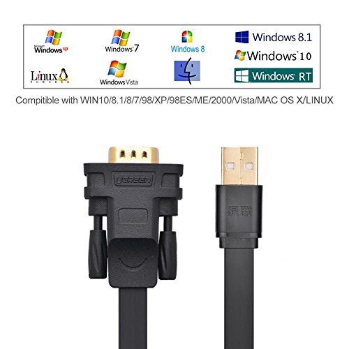 UGREEN USB 2.0 to RS232 DB9 Serial Cable Male A Converter Adapter with FTDI Chipset for Windows 10, 8.1, 8, 7, Vista, XP, 2000, Linux and Mac OS X 10.6 and Above (3ft)