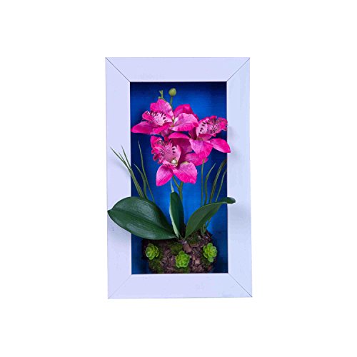 Artificial Flower Arrangement 3D Wall art Fake orchid Home Tabtop Decoration (Purple red)