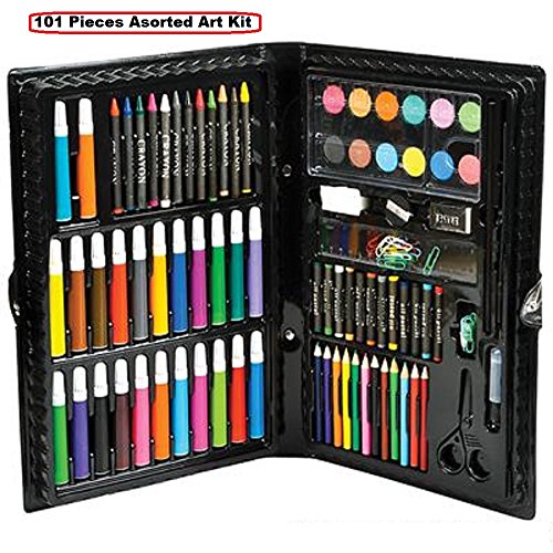 DELUXE ART SET - 101 PIECES ASSORTED ART KIT SUPPLIES FOR ARTISTS, PAINTERS, WATERCOLOR, DRAWING, SKETCHING, COLORING, CRAFTS, TEACHERS, AMATEURS, PROFESSIONALS, AND BEGINNERS -BY KIDSCO