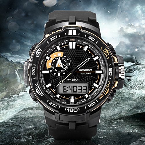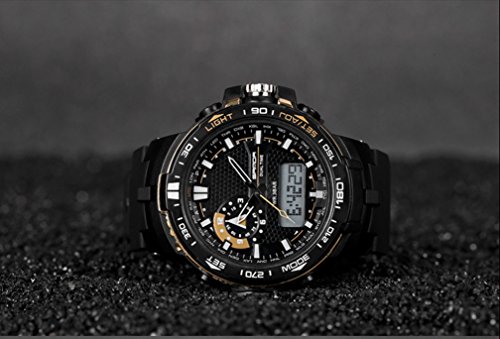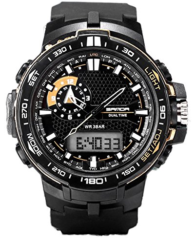 -. Title : Large Dual Dial Analog Digital Quartz Electronic Wrist Watches For boys watch 10 years Black+Gold