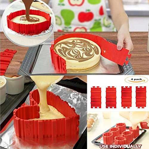 ECHI DIY Baking Mould Tools, 4Pcs Silicone Cake Mold Snake, Magic Nonstick Bake Snakes, Create Any Shape of Cakes (4, Red)