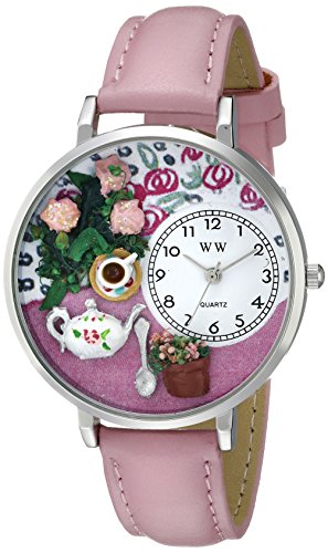 -. Title : 紅茶と薔薇ピンクレザー シルバーフレーム時計 #U1210011