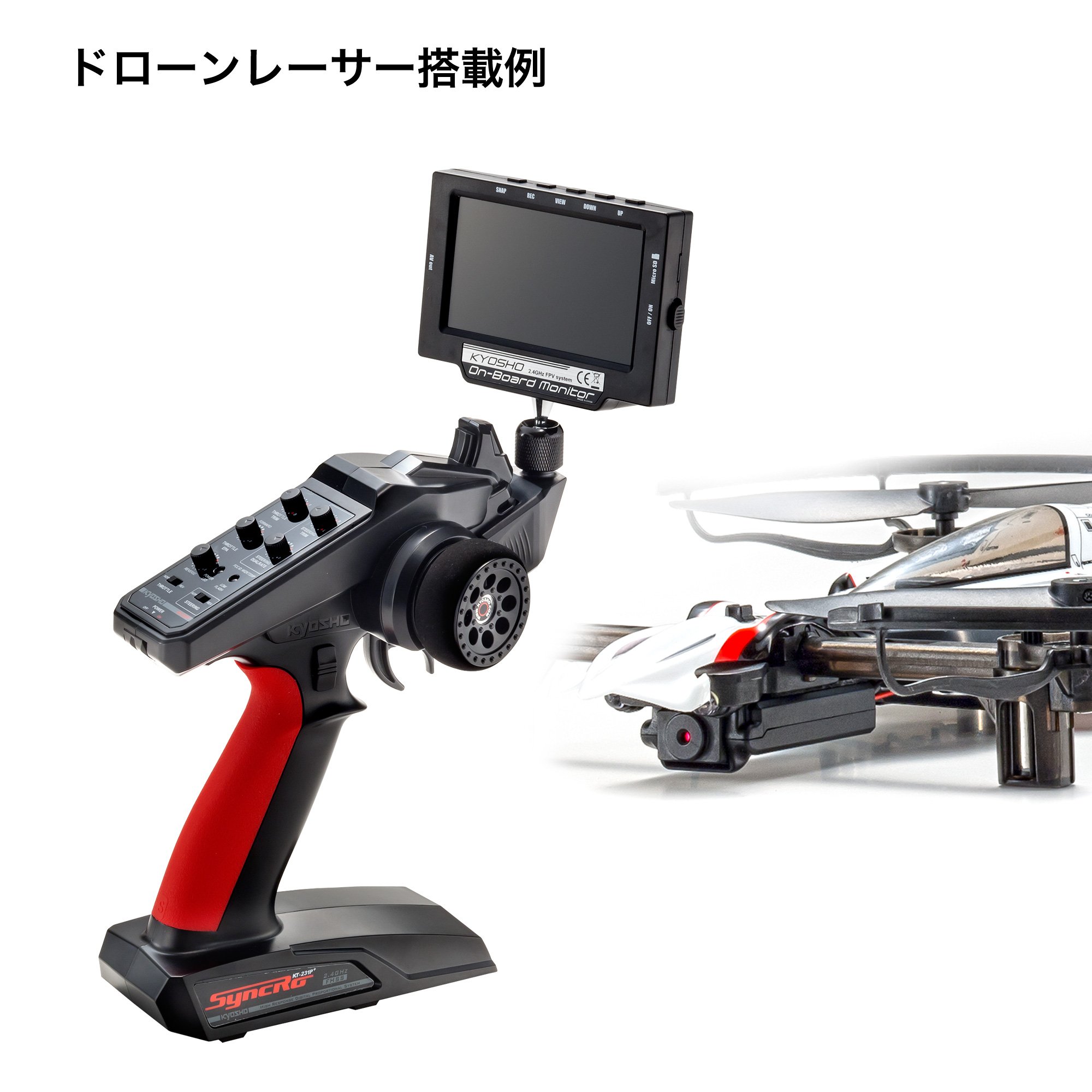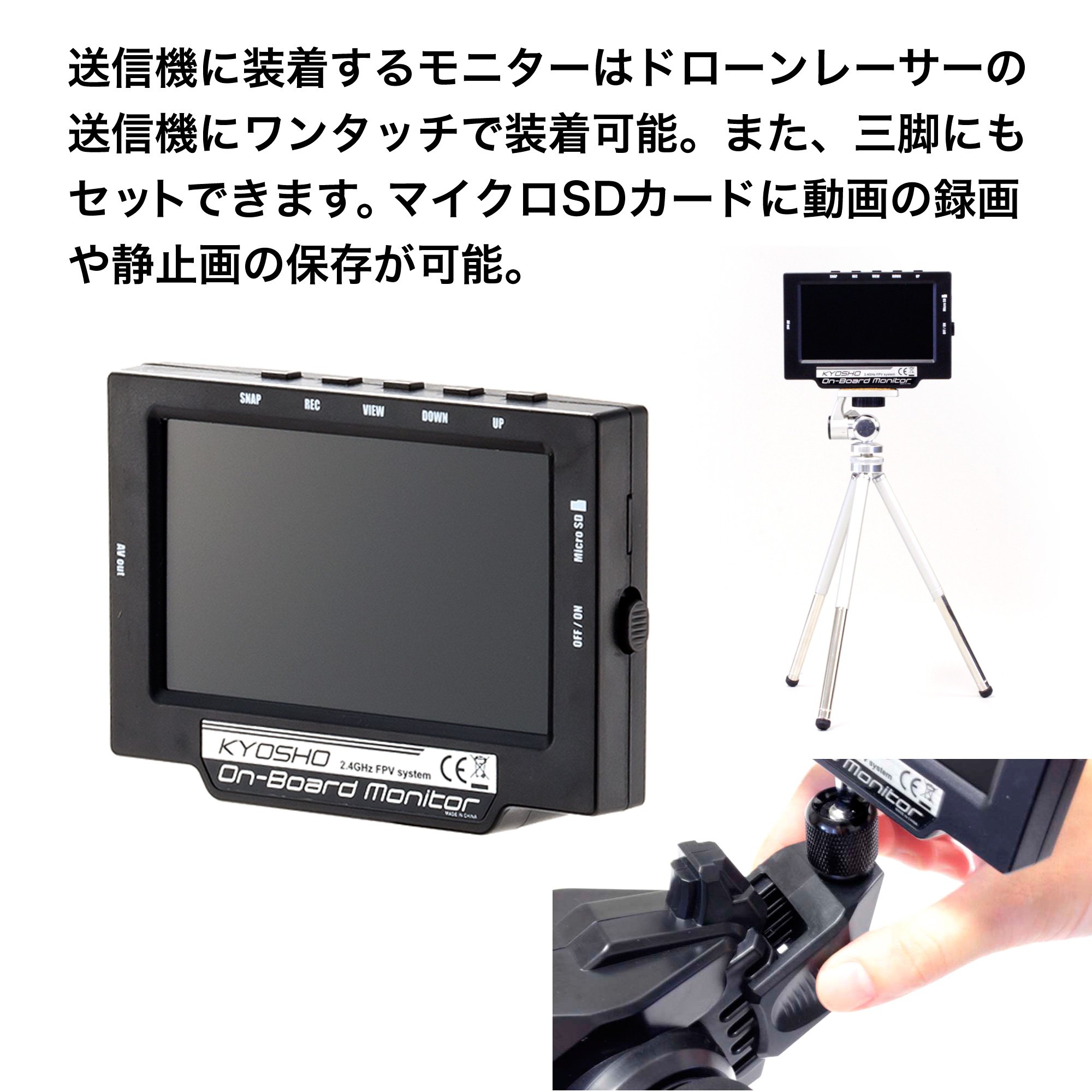 "KYOSHO onboard monitor" which is equipped with wireless camera and monitor, which can easily enjoy FPV which can be steered while watching images during flight (running) on the existing R / C model.