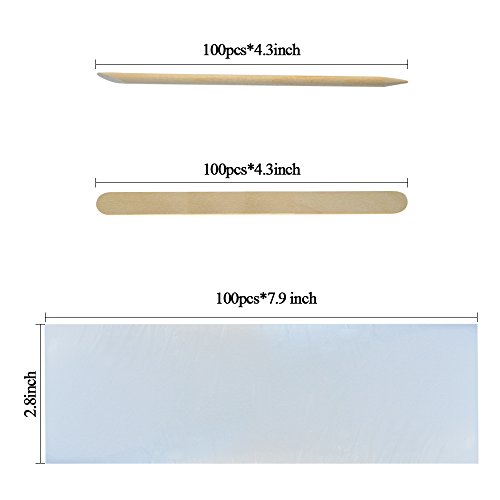 - WAXING strips dimension: 200 pieces of large wax strips: 2.8 inches x 7.97inches /7 x 20 cm(WxL) Wax applicator sticks: 200 pieces wax applicator sticks in 2 sizes, 100 pieces of tip sticks is 4.5 inchs/11.5 cm in length, and 100 pieces smudge sticks are 4.5x 0.4x0.08 inche/11.4 x 1 x 0.2 cm(LxWxT), which can meet your different needs.