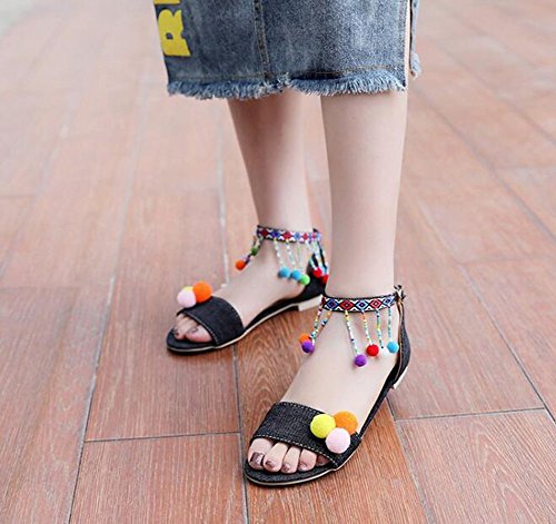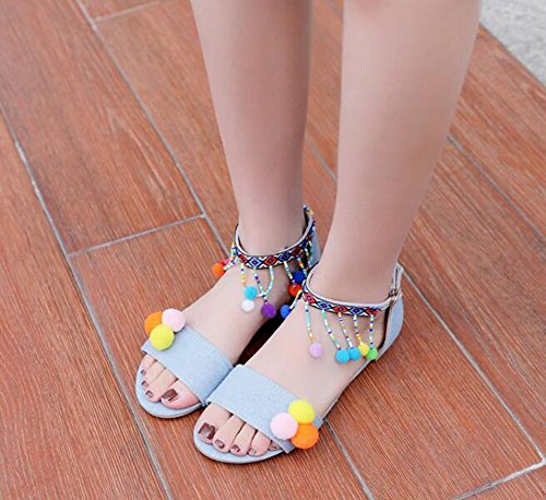 Wear style: buckle Function: non-slip Style: Roman shoes Pattern: Splicing color Soles craft: viscose shoes Upper height: low top After the style: package with Color: black, light blue, dark blue Size: 34,35,36,37,38,39 Upper material: denim Sole Material: Rubber Style: Rome casual sweet Toe shape: peep toe Heel height: flat heel Heel shape: flat heel Popular elements: candy color, beaded, tassel, fight color 0 |