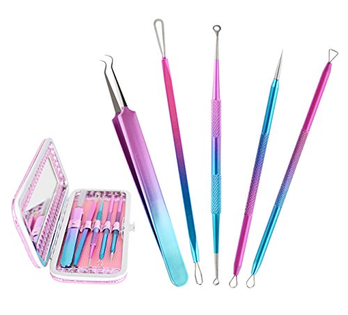 Pengnuo Professional Blackhead Remover Kit Set 5pcs, Pimple Comedone Extractor Tools, Blackhead Pimple Comedone Acne Extractor Tweezers Tools Set,...