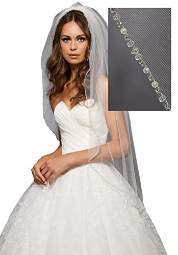 (Passat)/Accessories/Scarves/DIRECT FROM USA/Passat 3 Colors Single-Tier 36" Fingertip Length Wedding Bridal Veil Edged with Pearls, Crystal...