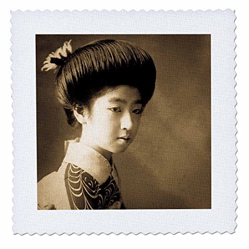 3dRose Vintage Japanese Geisha in Sepia Quilt Square, 14 x 14"