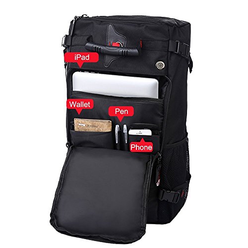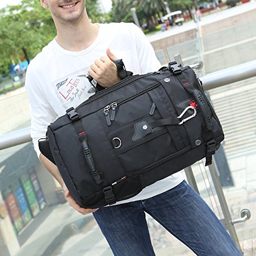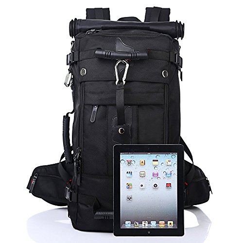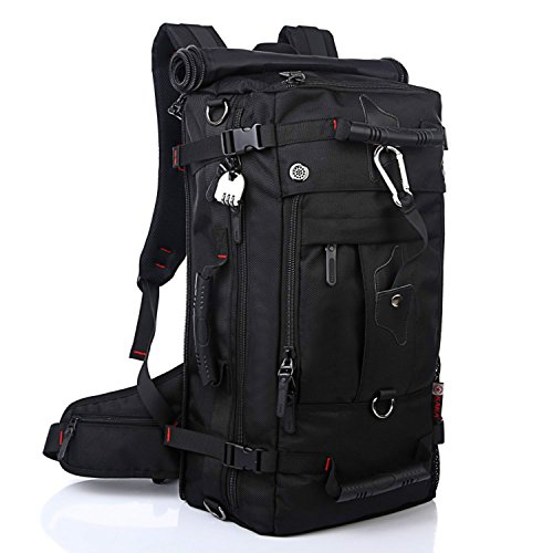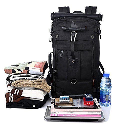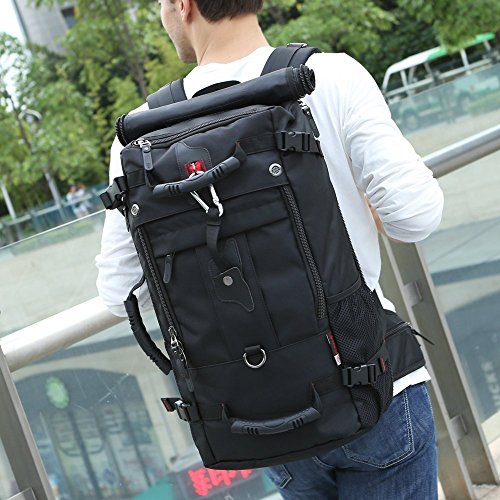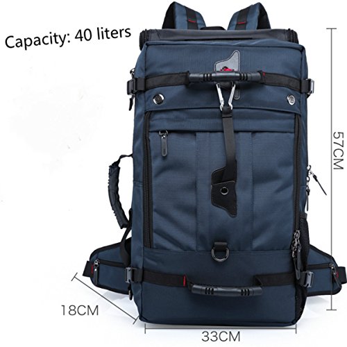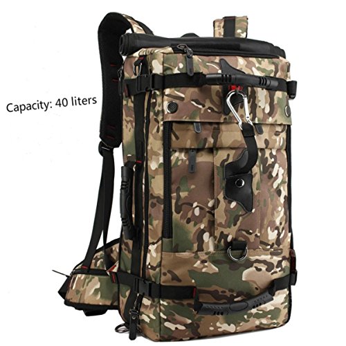 Studio : My case diy store Publisher : My case diy store Product Description Specification Dimension: Approx. 55 H x 32 L x 20 W cm Capacity: 40L. Laptop Size: Up to 15 inch laptop. Material: Water-resistant durable oxford fabric, antirust metal buckles and breatheable sponge pads. Carrying Ways: Backpack, handbag or shoulder bag. Occasion: A hiking, camping, climbing, mountain, gym, sports, business, travel backpack. Gender: A men boys knapsack. Description Durable Backpack The backpack is made of sturdy wear resistant 100% oxford fabric. When you travel or experience challenging activities with the backpack, you should never worry its durability and any inconvenience caused by it. Let it be your faithful friend on the journey. Large-capacity Backpack If you wants the backpack for your travel or business, you make a good choice. The 40L backpack is sufficient enough for up to 15 inch laptop, several suits of clothes, water bottle, umbrella, wallet etc. Comfortable Backpack The soft sponge shoulder straps on the backpack contribute to reducing your shoulder stress while two thickened cushions on the back promote the breathability and comfort. It is good for health. Multifunctional Backpack 3 carrying ways, backpack, handbag or shoulder bag, fits 1 bag. It is wonderful for it. You could use it the way as you like. The detachable shoulder strap for the shoulder bag is attached in the bag. How to turn the handbag into the backpack 1. Open the back zippers of the backpack 2. Roll up the flap to the top, and you will see the shoulder straps. 3. Fix the flap with velcro. Package 1* 40L backpack. 1* detachable shoulder strap. 0
