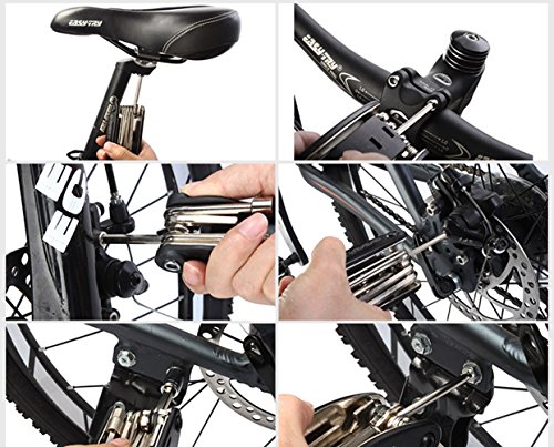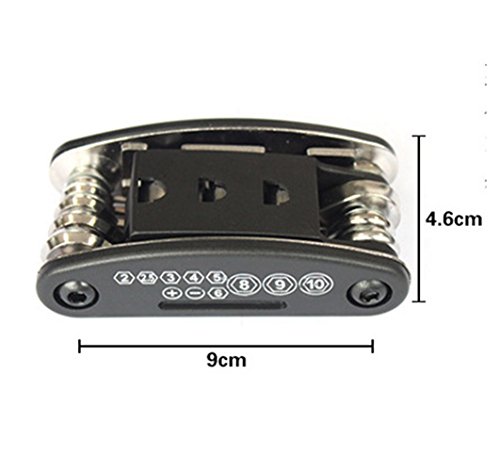 Studio : QUANSHENG Publisher : QUANSHENG Binding : Misc. Product Description Name: 16 function tool Material: carbon steel Weight: about 0.21kg Size: After folding 9 * 4.6 * 2.6 Scope: outdoor sports, cycling, gift tools, home necessities, camping and so on. The main function: Multi-use bicycle maintenance tools: 2mm / 2.5mm / 3mm / 4mm / 5mm / 6mm Allen wrench each one; 8mm / 9mm / 10mm socket wrench each one; "One word" / "cross" screwdriver each one; 8mm / 10mm / 15mm hex wrench each one; 14g wheel spoke wrench one. Name: plastic pry bar Plastic tires and metal bead difference is to prevent excessive force, damage the aluminum alloy rim The inside has a reinforcing structure, more durable; with anti-skid, easy to use; Material is black nylon plastic, hard material, easy to bend Because the plastic tires slightly elastic, the efficiency of steel bars without high 0