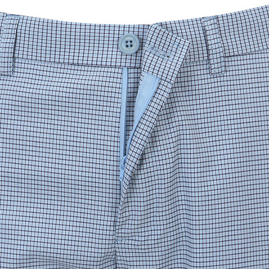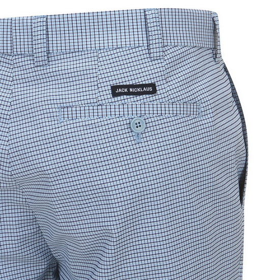- 배색의 스퀘어 패턴을 적용한 남성 팬츠.