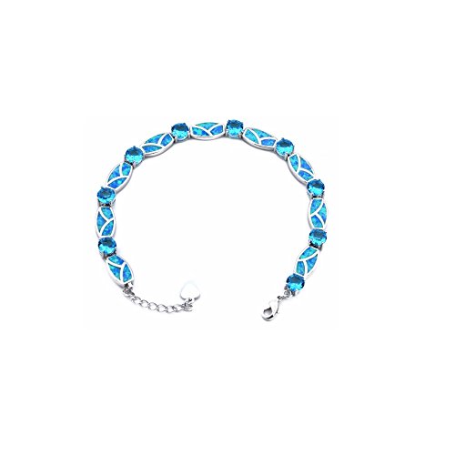 This is a gorgeous polished sterling silver "Synthetic Blue Fire Opal Bracelet" that will compliment any outfit or occasion. Actual length of Opal and stones is 7" and it is adjustable to 8". Comes in a decorative gift pouch.Feature