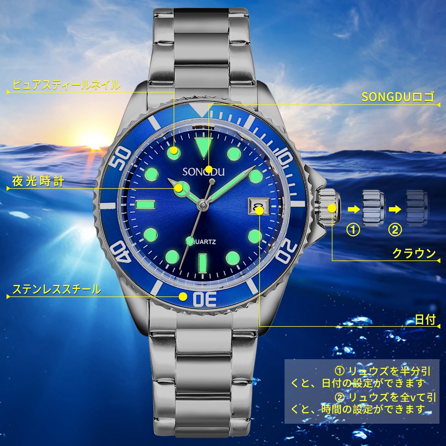 Time is very easy to adjust, you can change the time by pulling the Noble on the side and twisting it.