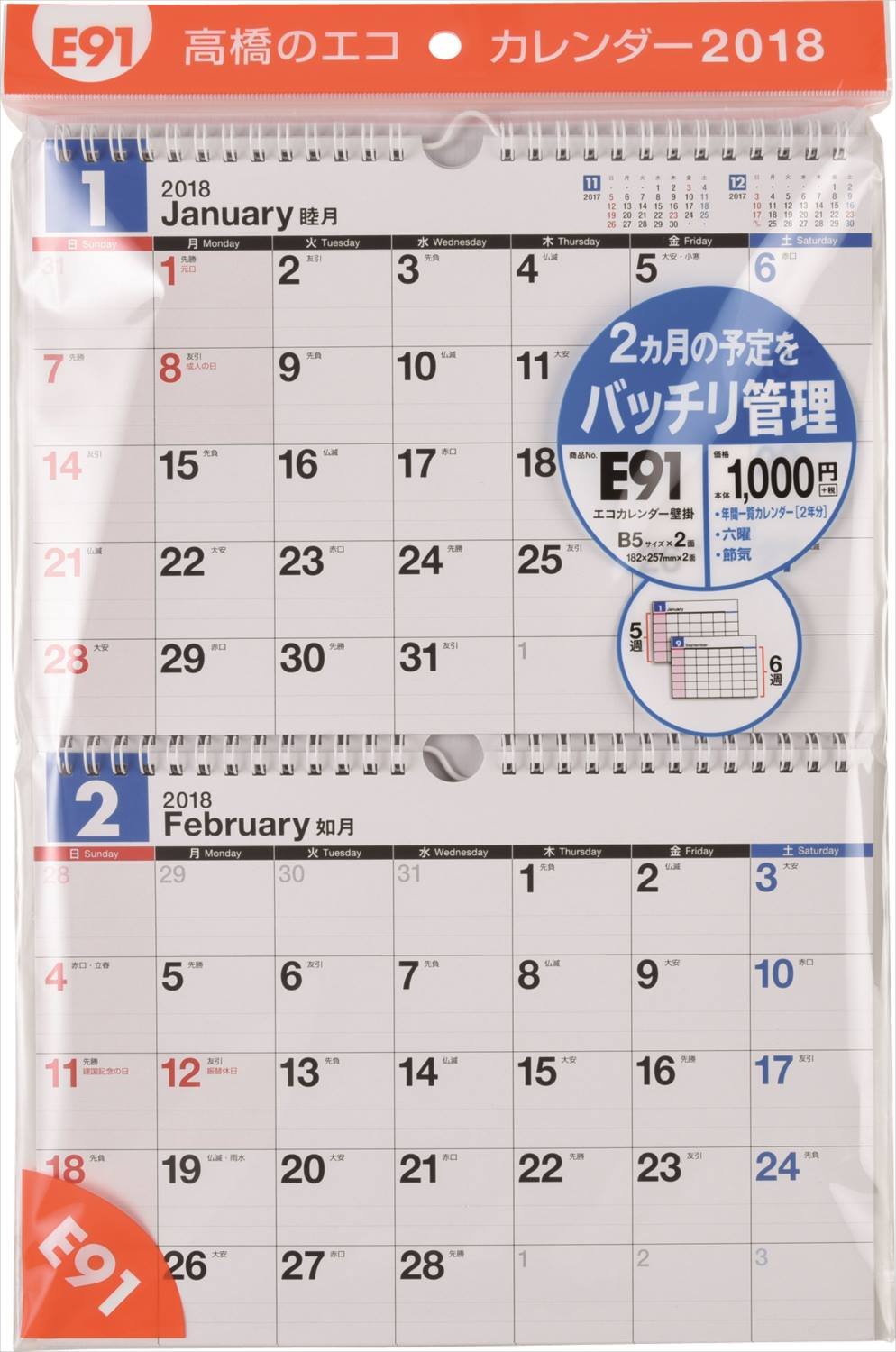 【Compact wall-mounted calendar】 (br) Popular square type (br) Compact, so you can hang anywhere regardless of location.