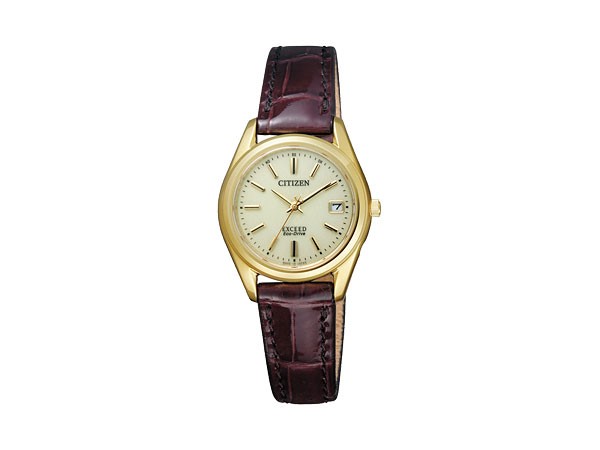 シチズン CITIZEN エクシード エコ ドライブ 電波時計 ペアウオッチ 国内正規 革 レザー  商品仕様:厚み(約)7.7mm、重さ(約)21g ステンレス、金色めっき(ケース)、ワニ(ベルト) ケース、保証書、取扱説明書