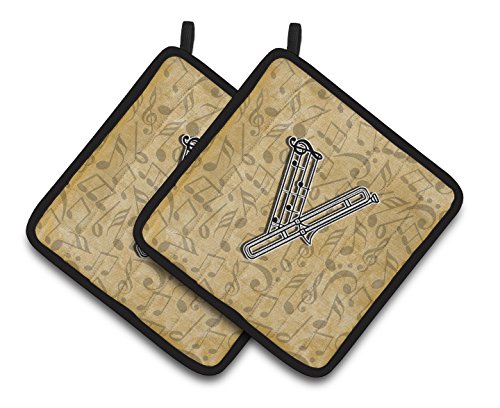 Caroline's Treasures Letter V Musical Instrument Alphabet Pair of Pot Holders CJ2004-VPTHD, 7.5HX7.5W, Multicolor