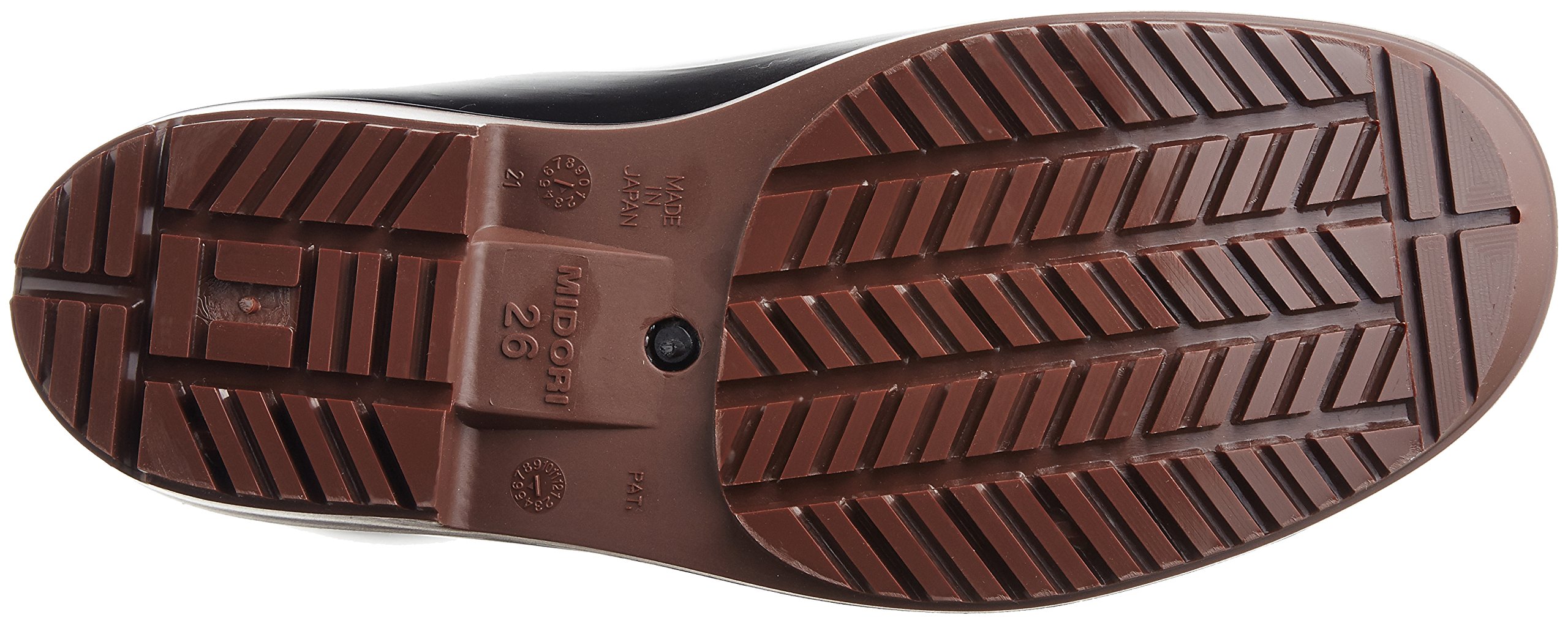 High grip rain boots of "Midori Safety" that is strong against both skidding and sliding of the grating.