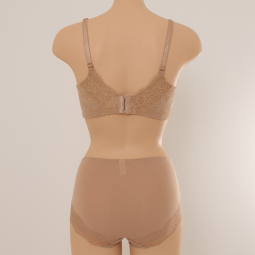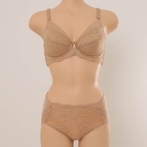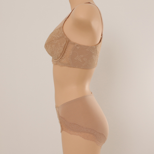 이 제품은 풀컵라인의 컵에 상변에 파워넷 원단을 덧댄 스타일로 디자인된 제품입니다. 컵상변 레이스 윗쪽으로 파워넷 원단을 덧대어 기존의 풀컵 제품보다 가슴을 더욱 감싸주도록 설계 되었습니 다. 플라워 패턴의 레이스와 시스루한 상변의 원단이 어우러 져 여성스러운 느낌을 나타내줍니다