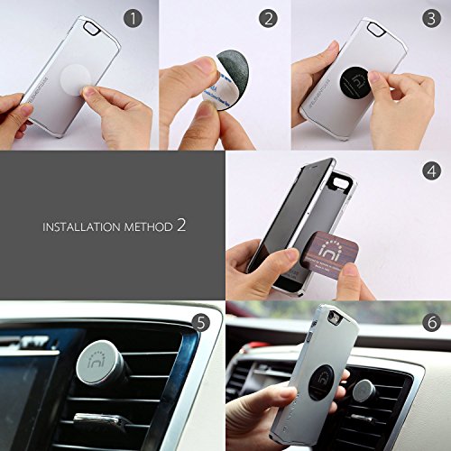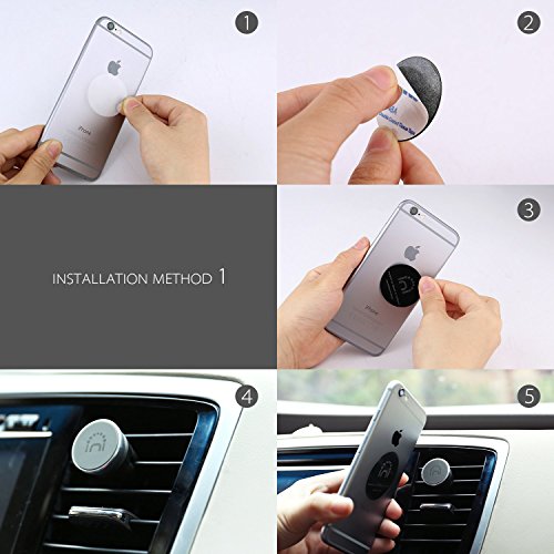 Smartphone car mount portable, compact and functional - designed to ensure that your device is attached securely and free of any viewing obstructions. Simply install the included magnetic plate into your device's case for it to work in conjunction to the spinido ti-smart magnetic clip from the car's air vent. Features 1) ti-smart magnetic car mount for cell phones is not bulky or space consuming at all. You no longer have to suffice for keeping your phone in the cup holder or dashboard, because a normal car mount gets in the way. Ti-smart magnetic car mount inserts into the air vent, thereby not blocking your windshield. 2) Navigation is extremely easy with this magnetic car mount. It can easily rotate, fix, or tilt to any angle that best assists the viewer of the phone. 3)The magnetic technology is safe to use, and will not harm any smartphone. The carbon steel plates inside the magnetic car mount are ultra thin and designed in a way that it provides powerful holding power as well as absorbing magnetic instability. Along with being safe, it is also powerful, it attracts any phone to it quickly - this is the auto-mount feature. The user can just bring the phone near the mount and it will take it easily, so the user no longer has to fuss about with safekeeping their phone tips: this car mount including 2 metal plates, you can place the two plates on each side of the phone case respectively, which will make the magnet stronger and the plate wider. Noticeto make sure the best magnetic attraction 1. Exceeding 2mm protective shell, iron sheets must be attached to the outside. 2. Round iron sheet can only be attached to the outside of the phone shell or the phone.Feature
